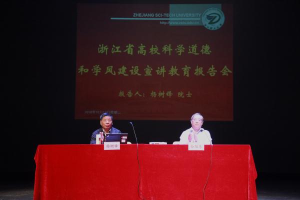 10月17日下午,浙江省科协和教育厅联合举办的2018年科学道德与学风建设宣讲教育报告会在国际会展中心大剧院举行。报告会邀请中国科学院院士、浙江大学杨树锋教授作专题报告。报告会由校纪委书记孙旭东主持,省科协组织人事处、省教育厅高科处(省学位办)、省科协组织人事处、校党委研工部相关负责人等应邀出席了报告会。杭州电子科技大学、浙江工商大学、中国计量大学、浙江财经大学、浙江传媒学院和我校的近千名研究生、导师代表和研究生教育管理人员参加了宣讲教育报告会。