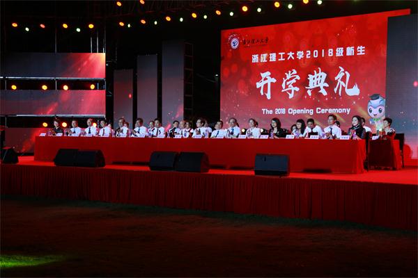 在庄重的校歌声中,主席台领导为新生代表佩戴校徽,授予新生“浙理人”的光荣身份。