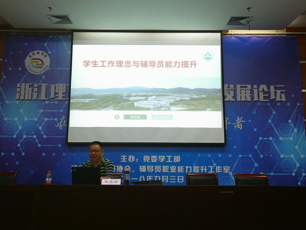 此次学习为期三天,由党委学工部与浙江红船干部学院联合主办。校内学习期间,与会人员就日常学生教育管理重点难点问题展开了互动交流和经验分享,呈现了以研究带动工作的积极氛围。党委学工部部长胡琦就做好开学准备工作和新生始业教育工作进行了全面部署,副部长黄黎就“浙理.易班”管理系统的操作为学员做了培训。会议邀请浙江农林大学党委副书记史永安教授作了题为《学生工作理念与辅导员能力提升》的专题报告,他从高校落实“立德树人”根本任务的高度,为学员深刻阐释了高校学生工作供给结构的深刻变化,结合具体问题剖析了“以人为本”的学生工作理念和路径,分析了当前思政队伍的特点、地位、作用及短板,并就学生思政干部如何提升职业素质能力、做好职业规划提出了宝贵建议。