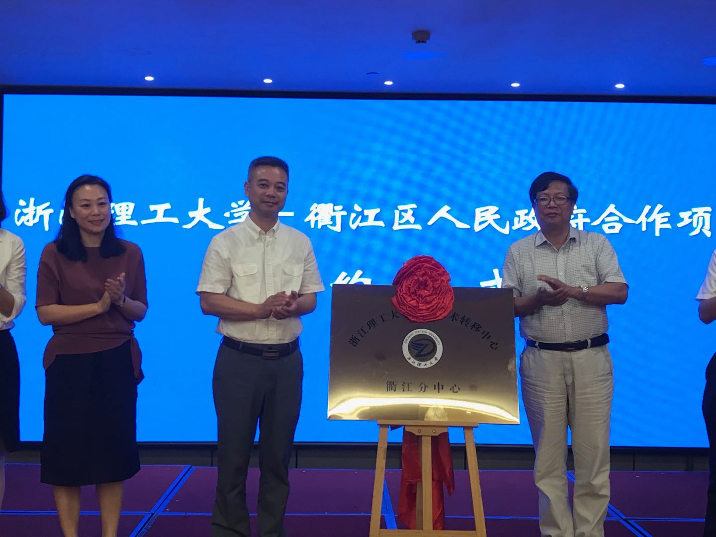 7月26日下午,我校与衢州市衢江区《全面合作框架协议》签约仪式和“tyc33455cc太阳集团成网官方入口国家技术转移中心衢江分中心”揭牌仪式在衢江区举行。我校副校长陈文华,衢州市政协副主席、区委书记吴江平,衢江区政府副区长曾有仙,我校科研院常务副院长武传宇、科研院相关负责人及衢江区相关职能部门负责人等参加了活动。