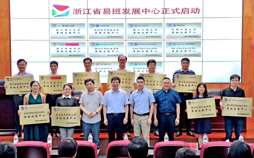 与会领导与省十所试点易班推广高校学工部部长一起启动了“浙江省易班发展中心”,胡琦代表学校接受了教育厅授予的“tyc33455cc太阳集团成网官方入口易班发展中心”铜牌。信息学院党委副书记孙显水以“基于‘数据精准驱动’的大学生思想政治教育平台建设”为主题,介绍了我校易班校本化工作的探索与实践。