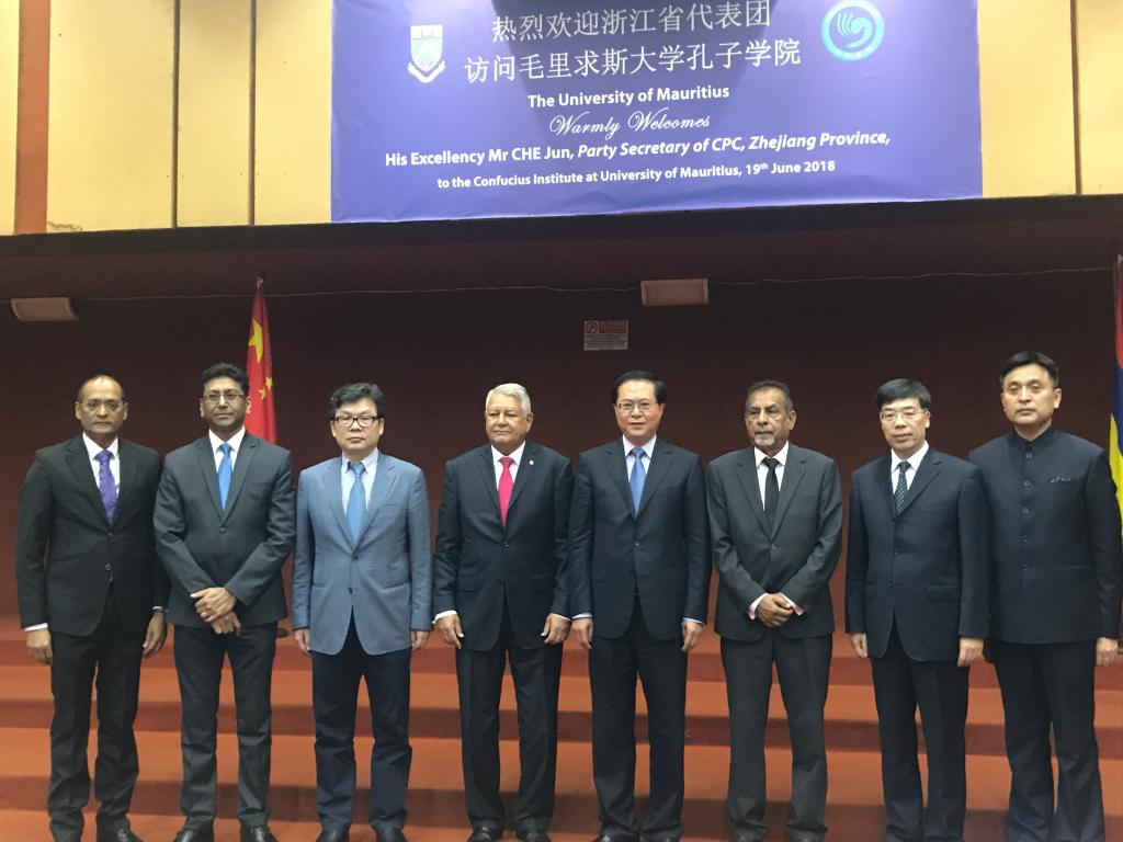 当地时间6月19日,浙江省委书记车俊访问毛里求斯大学孔子学院。