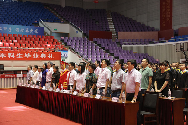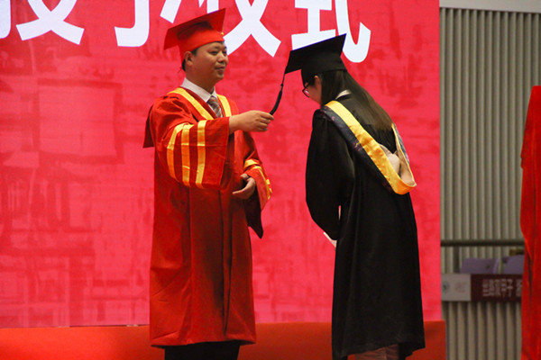 毕业典礼在庄重的国歌声中拉开序幕。在同学们的热烈欢迎中,陈文兴一一为毕业生拨穗并授予学位证书。
