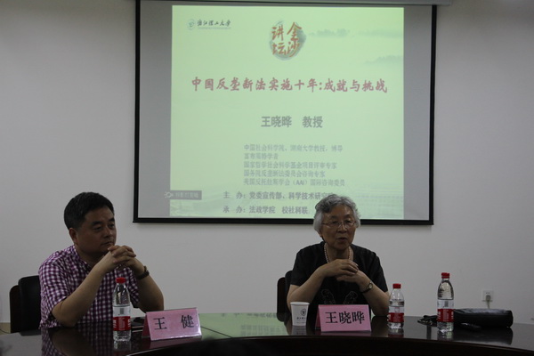 6月13日上午,中国社会科学院、湖南大学博士生导师王晓晔教授做客我校金沙大讲坛,以“中国反垄断法实施十年:成就与挑战”为题在25号楼1210会议室作了一场精彩的讲座。讲座由法政学院院长王健教授主持,法律系师生50余人聆听了讲座。