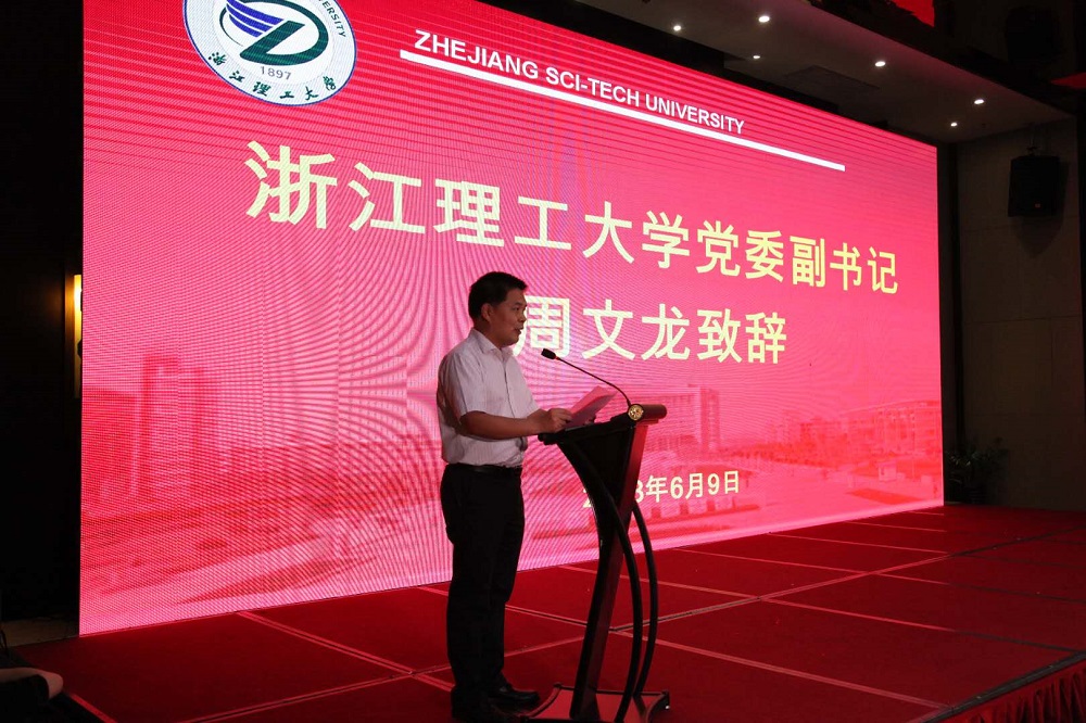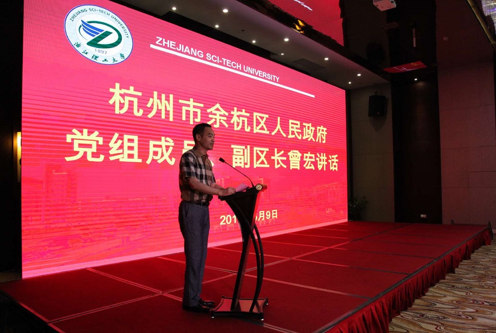 6月9日下午,由tyc33455cc太阳集团成网官方入口和杭州市余杭区政府主办的2018中国时尚产业创新创意创业高峰论坛在余杭区举行,本次大会以“创青春·创梦想·创时尚”为主题。中国纺织服装教育学会会长倪阳生,校党委副书记周文龙,余杭区人民政府党组成员、副区长曾宏等领导应邀出席了本次会议。