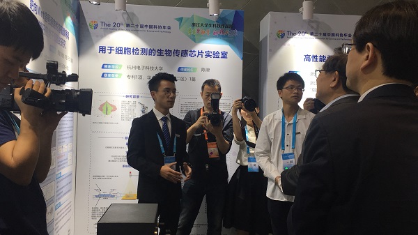 活动现场,万钢还参观了浙江部分高校大学生科技作品展,并与在场大学生就创新创业、高校科技成果转化落地等主题进行了交流。我校机械与自动控制学院作品《基于多飞行器的空气质量监测组网设计》(2017年“挑战杯”国赛二等奖作品)参与了展出,生命科学学院作品《靶向Wnt信号通路溶瘤腺病毒抑制肝癌类干细胞的研究》(2017年“挑战杯”国赛一等奖等奖作品)作了2分钟的项目介绍,获得了万钢的肯定。