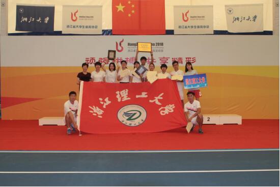 6月1日,浙江省第十五届大学生运动会网球比赛(甲组)在浙江大学紫金港网球场落下帷幕。我校网球队获得团体总分第一名、男子团体冠军、男子双打冠军、混合双打冠军、男子单打亚军、女子团体季军,女字单打第七名的佳绩。我校网球队被评为“体育道德风尚奖”代表队,教练员李文平老师获“体育道德风尚奖”。