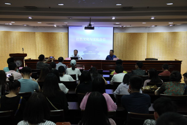 刘润为教授主要围绕三个问题进行了阐释:什么是我们党和人民的文化自信?红色文化为什么让我们自信?文化自信具有怎样的现实意义和历史意义?刘会长谈到,民族复兴,归根结底,体现为文化的复兴。这要求我们不忘初心、不负使命,抓住机遇、锐意进取,不断实现中华优秀传统文化的创造性转化和创新性发展,不断推动红色文化的发展繁荣,让以中国化马克思主义为核心的充满民族智慧的红色文化在指导实践、推动发展中取得更加伟大的成就,让我国的国际示范作用越来越大,让我国的国际威望越来越高。