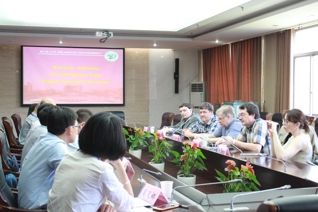 郜正荣首先代表学校向远道而来的代表团成员表示热烈欢迎。他指出国际化办学是我校一贯坚持的办学理念,他希望以本次院士代表团来访为契机,加强双方在化学、材料领域的科研合作及师生互访交流。随后国际交流与合作处傅翔处长介绍了我校的办学历史、办学特色和发展成就。Vladimir Galkin教授对我校化学系的邀请表示感谢,并介绍了喀山联邦大学的历史和概况。他诚挚邀请我校组建团队前往俄罗斯喀山联邦大学进行学术访问。随后化学系的中青年学术带头人和学术骨干向俄罗斯专家汇报了各自的研究成果,并与对方进行了充分的学术交流。