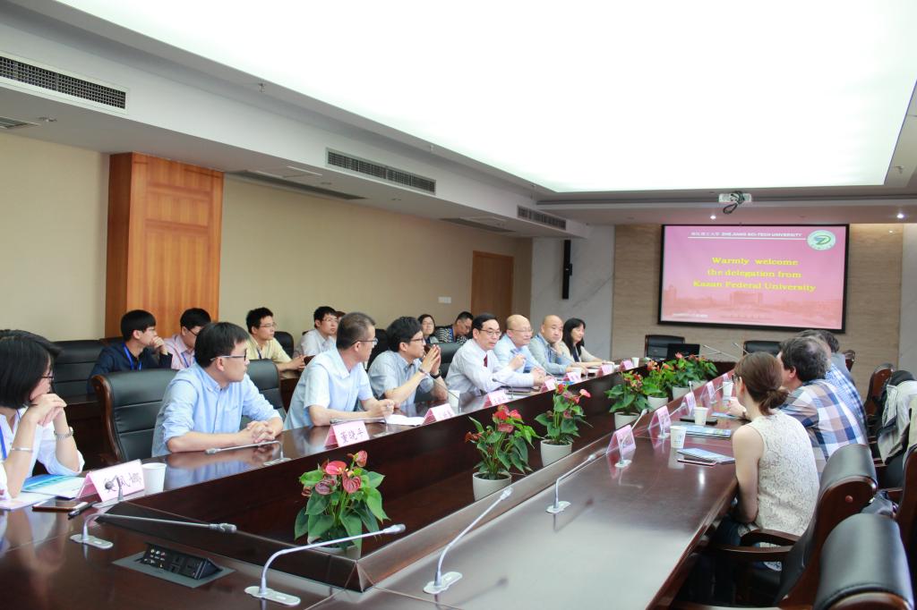 应我校理学院化学系邀请,俄罗斯鞑靼斯坦共和国科学院院士、喀山联邦大学布特列洛夫化学学院院长Vladimir Galkin教授,俄罗斯鞑靼斯坦共和国科学院院士、喀山联邦大学有机化学系系主任SergeevichIgor Antipin教授,喀山联邦大学无机化学系系主任RustemAmirov教授,喀山联邦大学巴特勒洛夫化学研究所Igor Sedov副教授、Irina Chelnokova副教授一行五人访问我校。