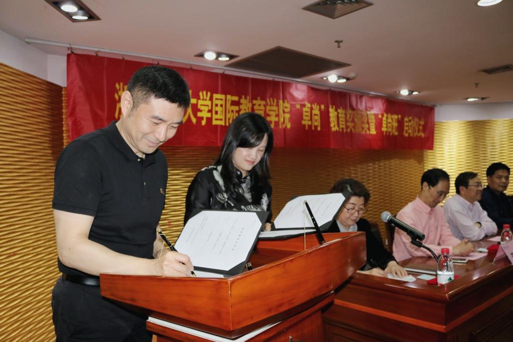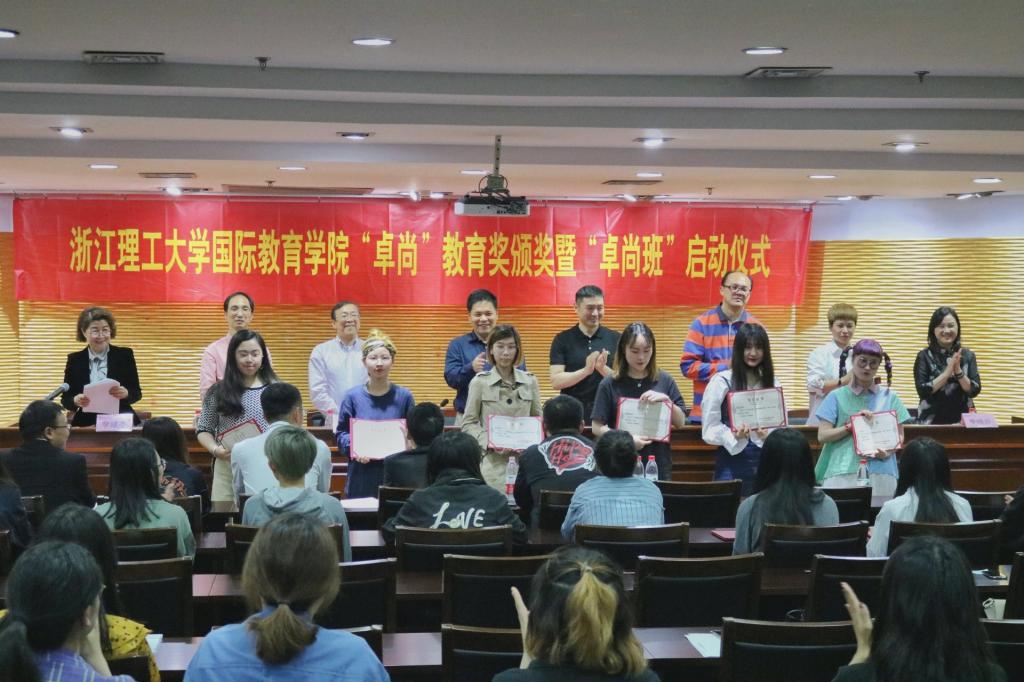 4月25日下午,国际教育学院“卓尚”教育奖颁奖暨“卓尚班”启动仪式在我校行政楼一楼报告厅举行。卓尚服饰(杭州)有限公司董事长丁武杰、顾问钱国新、人力资源中心总监满锦,校党委副书记周文龙、党委学工部部长胡琦、国际教育学院党总支书记季晓芬、院长李建平以及教务处相关负责人、企业嘉宾等出席了会议,国际教育学院师生代表和卓尚班学员参加了会议,会议由李建平主持。