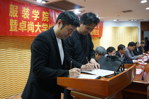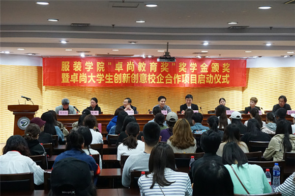 满锦代表公司宣读了2017年获“卓尚教育奖”综合奖、服装之星和创新创业奖学金获奖名单,随后主席台领导与嘉宾为获奖同学和团队颁发了荣誉证书,张璇影代表获奖学生向公司表达了感谢,丁武杰与服装学院院长邹奉元分别代表企业和学校签署了“‘卓尚’大学生创新创意校企合作项目协议”也标志着该项目的正式启动。