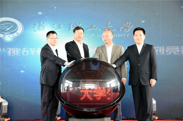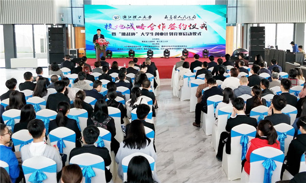 3月28日上午,我校与嘉善县人民政府校地战略合作签约仪式暨“挑战杯”大学生创业计划竞赛启动仪式在嘉善县开发区中荷产业园举行。校长陈文兴,党委副书记周文龙,嘉善县委副书记、县长徐鸣阳,嘉善县委常委、组织部长沈伟强,副县长陆春浩及双方相关部门负责人参加了签约仪式。仪式由陆春浩主持。