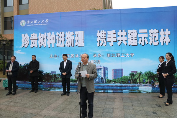 活动现场,陈文兴代表全体师生向省林业厅对我校生态校园建设事业的关心支持表示衷心感谢和诚挚敬意。他表示,实施新植1亿株珍贵树五年行动计划,是浙江省“十三五”发展重大工程。省里深入实施珍贵树种赠苗造林行动,是在以实际行动不断深化“绿水青山就是金山银山”的理念。本次活动既是建设美丽浙江的生动实践,也是绿化校园、建设“幸福浙理”的具体行动。希望大家精心呵护好珍贵树苗,认真培养好国家栋梁,为“两富”“两美”“两个高水平”浙江建设贡献力量!