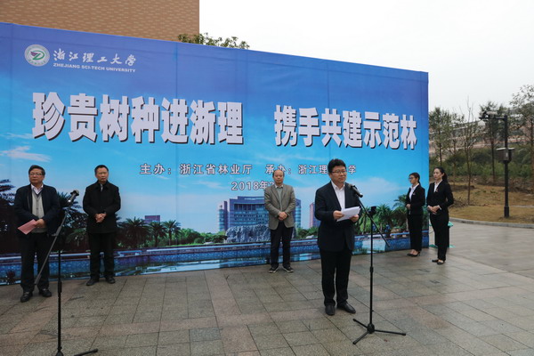 3月16日上午,由浙江省林业厅主办、我校承办的“珍贵树种进浙理 携手共建示范林”赠苗植树活动在学校举行。省林业厅党组成员、副厅长胡侠,省林业种苗管理总站站长洪兆龙,校长陈文兴,副校长陈文华以及林业厅相关部门领导、嘉宾和学校相关职能部门负责人、师生代表等参加了活动。活动由陈文华主持。