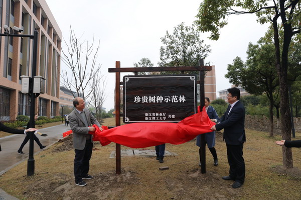 赠苗仪式结束后,胡侠和陈文兴共同为“珍贵树种示范林”揭幕。随后,省林业厅专家和我校师生们将珍贵树苗亲手种植在示范林内。