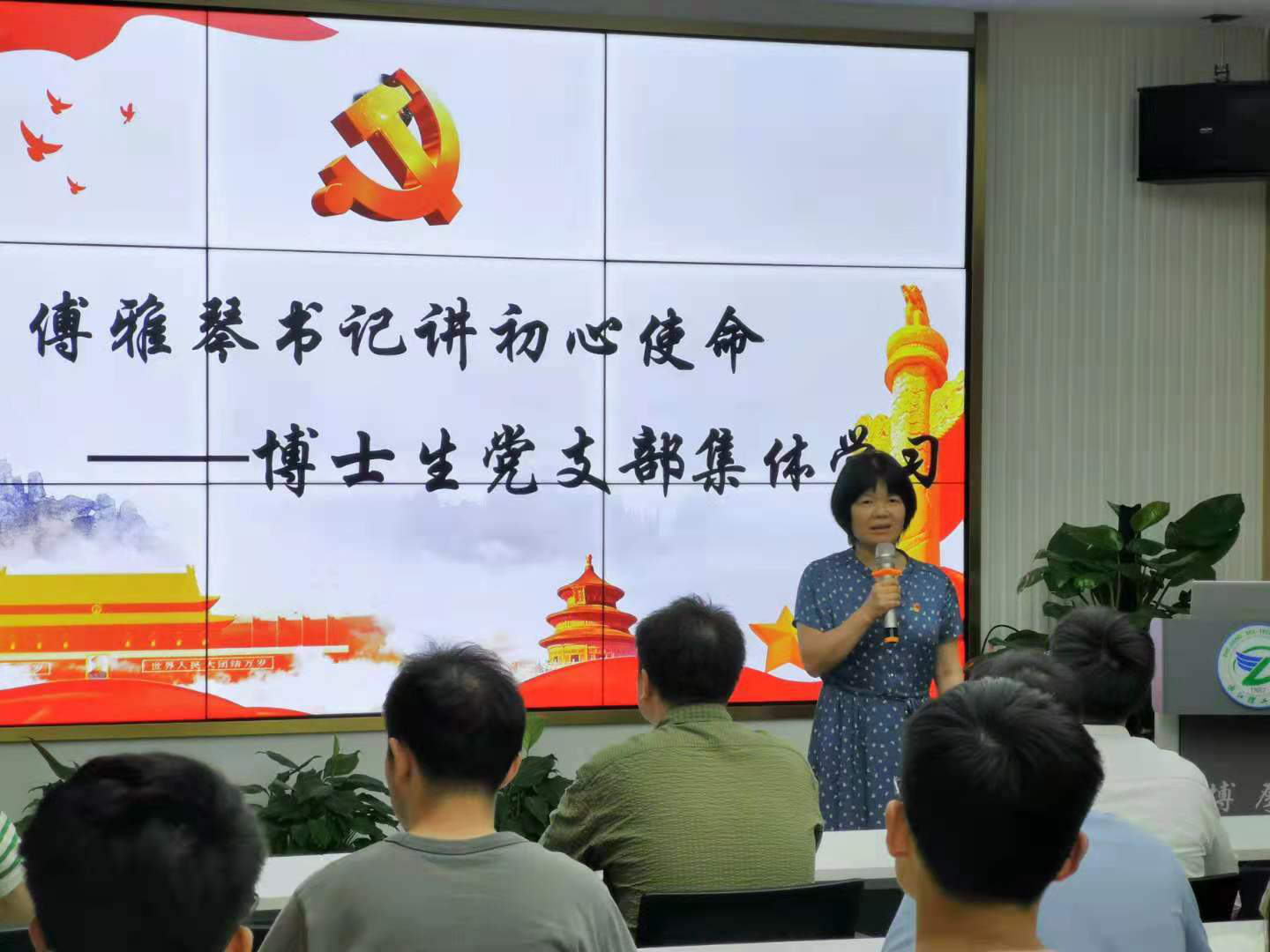 “大家为什么要选择读博士?为什么选择现在所研究的课题?”傅雅琴首先向大家抛出一个个问题,启发大家思考新时代博士生的初心与使命。并结合自身经历给博士党员们介绍了对初心和使命的理解。中国共产党人的初心和使命,就是为中国人民谋幸福、为中华民族谋复兴。这个初心和使命是激励中国共产党人不断前进的根本动力。而后,傅老师从科研人的角度,以袁隆平为榜样,向博士党员介绍了科研人应该拥有的初心和使命,告诉大家要保持高度的热情投入到科研工作中,为国家的日益强盛和新材料领域的进步增添一臂之力。又以陈文兴校长为例,讲述了科研人在践行初心和使命的过程中所需要的品质,希望大家把自己的专业做到机制,更要懂得自己的成果是站在巨人的肩膀上取得的,要谦虚谨慎、戒骄戒躁。