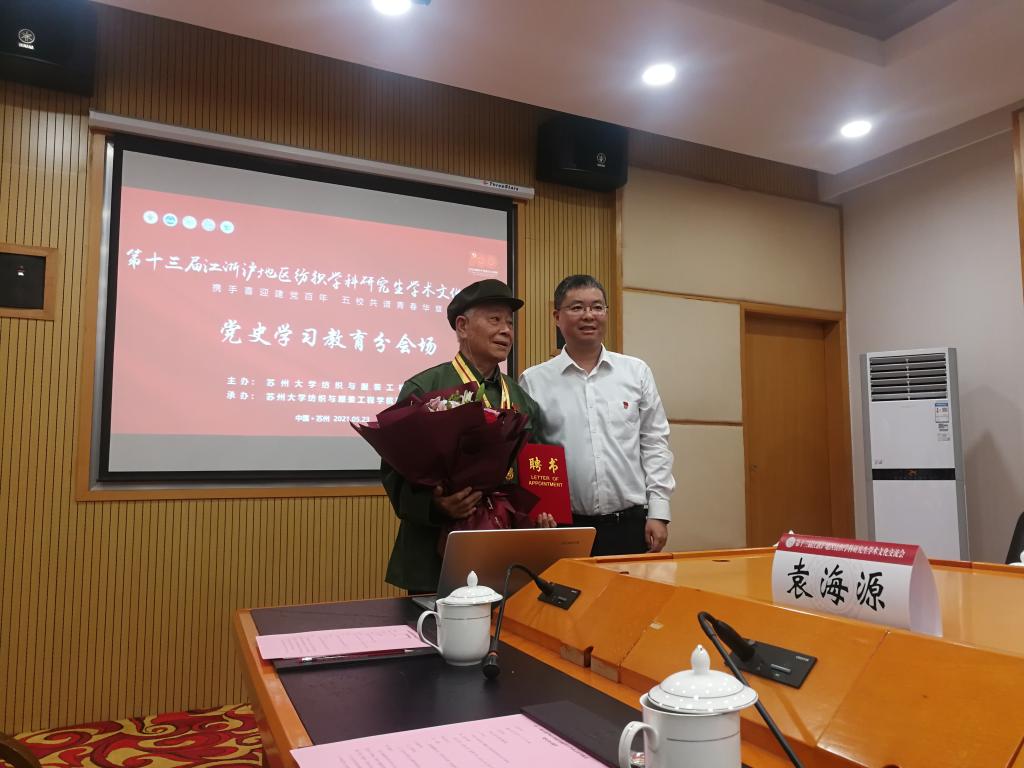 此后各校纺织专业的研究生根据自身课题研究方向分会场进行学术汇报交流。之后,各校带队老师和研究生会负责人齐聚苏州大学本部红楼进行党史学习教育交流会。本次交流会邀请了抗美援朝老兵、原苏州丝绸工学院染化系党总支书记任志向在座师生进行了一次专题党课。课后,参会高校教师就如何发挥学校的红色资源、专业资源开展党史学习教育、如何将课程思政与党史学习教育相融合进行了探讨。随后,与会教师参观苏州大学博物馆“初心不改、浩气长存”英烈展。各校研究生在学术交流汇报之后也进行了篮球赛、羽毛球赛等活动“以赛会友”。