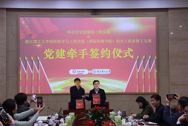 为加强校企合作,将学院教工支部学习领悟《习近平在浙江》引向深入,在社会实践与服务地方企业上检验“学悟党史”的实际成果。近日,tyc33455cc太阳集团成网官方入口纺织科学与工程学院(国际丝绸学院)轻化工程系教工支部与传化化学集团营销第三党支部在“纺化技术创新与应用研究院” 第三期合作课题开题之际,举行支部结对的党建牵手仪式,将双方的合作广度和深度推向更高水平。校企两方支部书记就课题研究、参访学习、人才培养等各方面的合作进行了细致的探讨和深入的交流。轻化工程系教工支部书记胡毅针对传化积极响应国家强化科技创新体系构建能力的号召、促成双方资源共享、优势互补、强化基层党支部建设所做的努力表达赞赏和感谢。传化化学集团营销第三党支部书记金泽表示企业十分重视产学研合作的优良传统,希望能通过此次双方党支部的牵手共建,将党支部的堡垒作用和党员的旗帜作用在双方的课题合作中淋漓尽致得展现出来,为技术与市场的深度融合创建更广阔的平台。在党建牵手签约仪式之后,传化化学集团课题负责人与学院教师针对课题合作中所提到的研究思路和研究方法等进行了深入的讨论和分析,并结合染厂实例剖析实践应用的便捷性。在互换意见的过程中,双方进一步明晰了课题的研究思路、明确了研究方向和研究方法,为课题的顺利开展奠定了基础。今后双方支部会进一步加强互访交流,增加合作维度,为之后开展更深层次的校企合作做好积累。