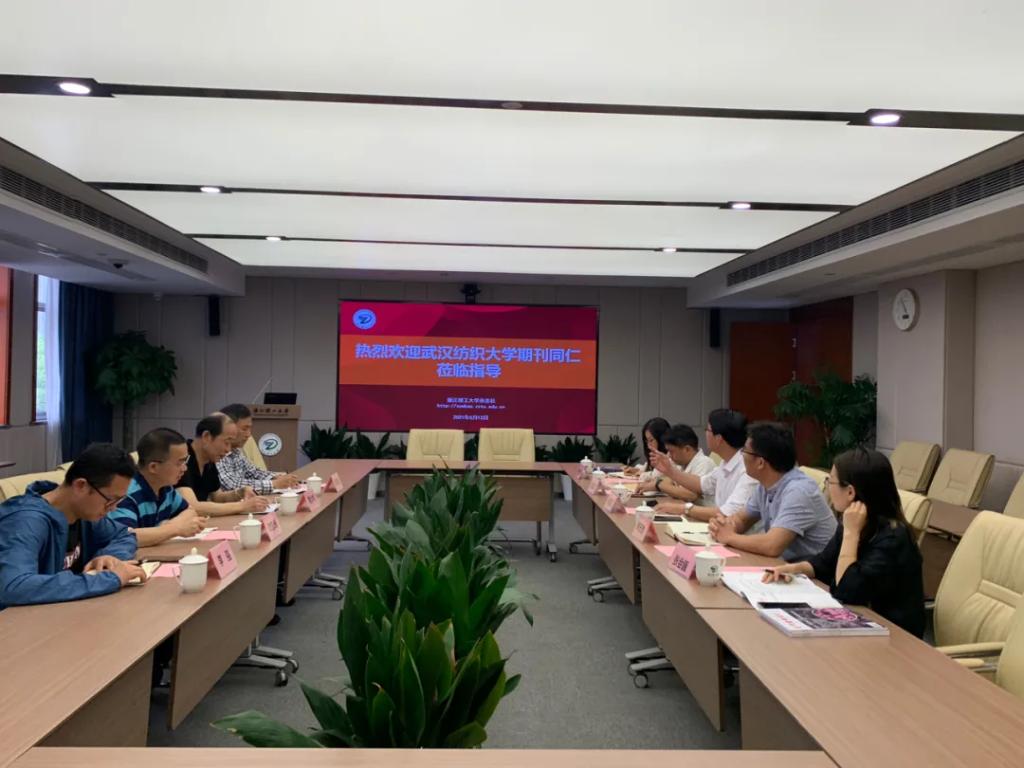 5月12日,为交流纺织专业期刊办刊工作经验,武汉纺织大学期刊社社长、教授黄少年,武汉纺织大学期刊社副社长、副研究馆员刘志洲,《学报》常务副主编、教授赵绪福,《服饰导刊》常务副主编、副编审李强一行来访我校杂志社,杂志社社长李启正和副社长徐石勇分别陪同参观了杂志社以及tyc33455cc太阳集团成网官方入口丝绸博物馆。《tyc33455cc太阳集团成网官方入口学报》副主编唐志荣,《现代纺织技术》副主编张会巍,《丝绸》副主编杨一舟等一同参加了办刊工作交流。