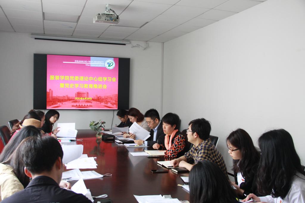 4月28日下午,服装学院党委召开理论学习中心组学习会暨党史学习教育推进会。院党委书记陈善晓、副院长(主持工作)刘正、院党委副书记方水明以及学院各党支部书记参加了会议。会议由陈善晓主持。