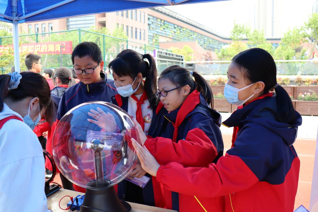 4月15日上午,钱塘区中小学生科技节在杭州市基础教育研究室附属学校开幕,理学院作为协办单位,受邀出席科技节开幕式,并以流动科技馆的形式将科普仪器搬进科技节的嘉年华现场,大学生志愿者带领中小学生们一起探秘科学仪器。