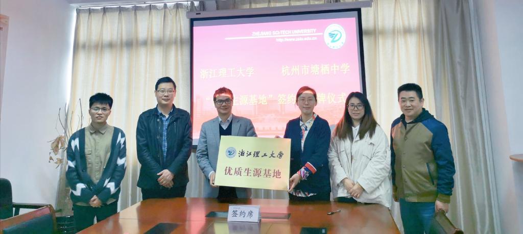 4月14日,我校与杭州市塘栖中学优质生源基地签约授牌仪式在25号楼1811会议室举行。杭州市塘栖中学副校长吴佳盈、政教主任俞小英、年级组长黄江,经济管理学院院长潘旭伟、党委副书记高山参加了签约仪式。