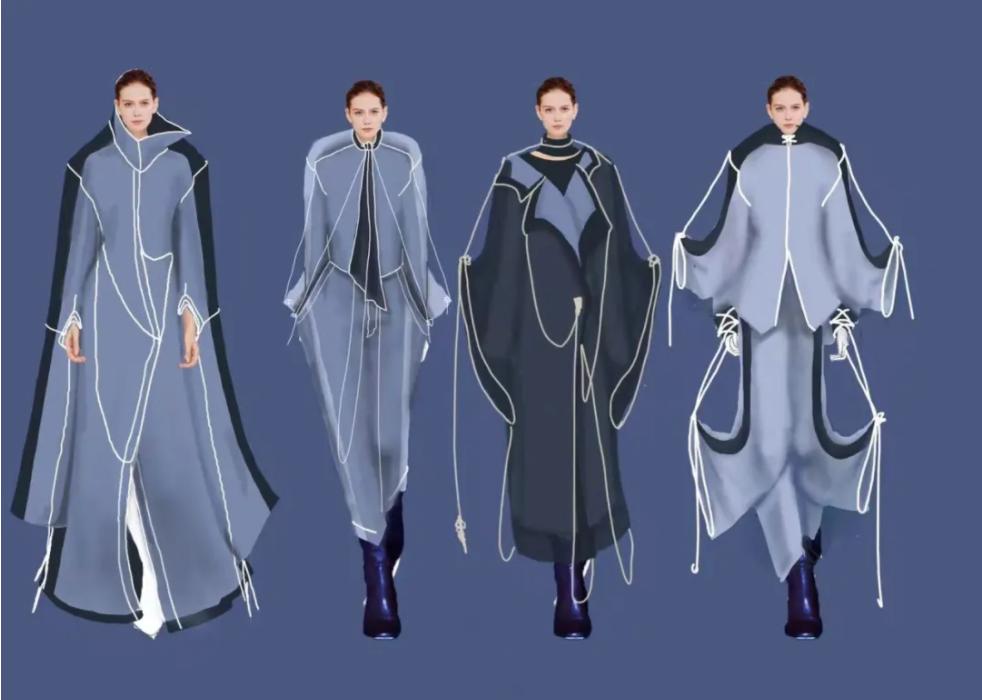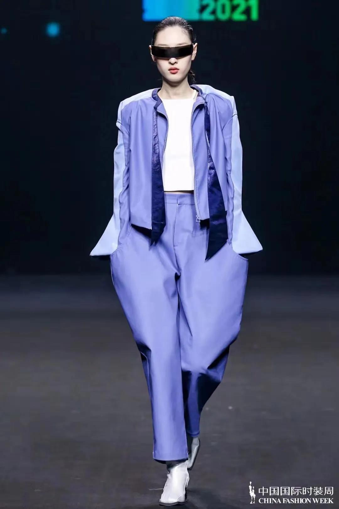 竺俞村的参赛作品《UN-VITALITY》共设计了一个系列四套服装,作品风格飘逸潇洒、色彩搭配简洁大气。作品在我校须秋洁副教授的指导下完成。在作品用材上,本着面料”安全环保可降解,新潮舒适“的理念,选取了生态铂金硅革作为主要面料,具有抗污易清洁、环保可降解的特点和优秀的舒适性、耐候性,最终收获了大赛评委的认可。