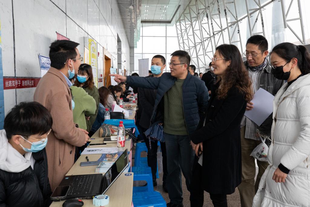 建筑工程学院党委书记兼副院长仰滢、执行院长俞峰、党委副书记李孝明来到现场,与各用人单位进行交流,介绍我院人才培养情况,积极推荐我院2021届毕业生。