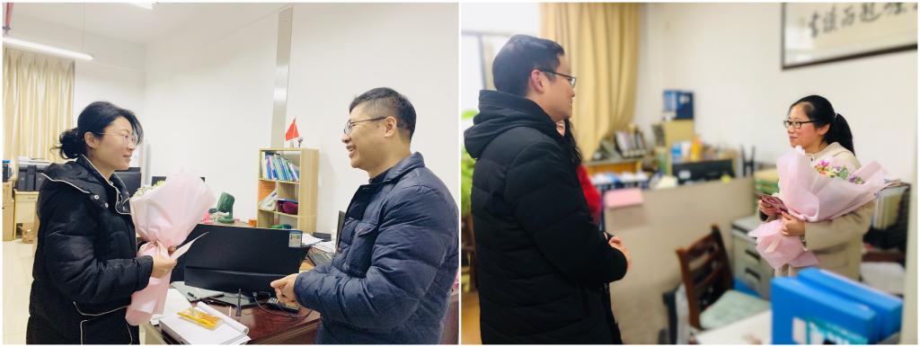 爱心播撒希望,奉献点亮芳华。在第111个“三·八”国际妇女节到来之日,机械与自动控制学院党政领导、工会主席走访慰问了学院全体女教职工,感谢她们用心用爱为教育事业和学院发展奉献芳华,并送上鲜花和卡片。慰问中,领导们特别关心了解了新进女教职工和青年女教师的发展近况,鼓励她们敢梦敢拼,用人格魅力教育影响学生,做学生筑梦路上的新时代“女神”。