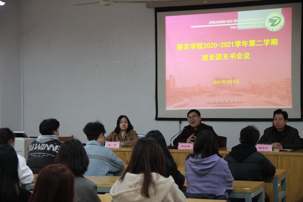 3月3日,服装学院学生工作办公室还组织召开了新学期班主任工作会议和新学期班长团支书会议,两项会议均由院团委书记、学生工作办公室主任胡永青主持。