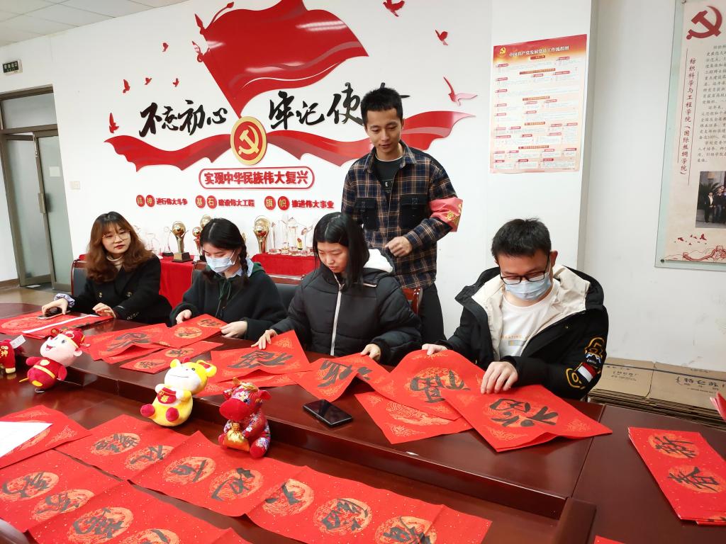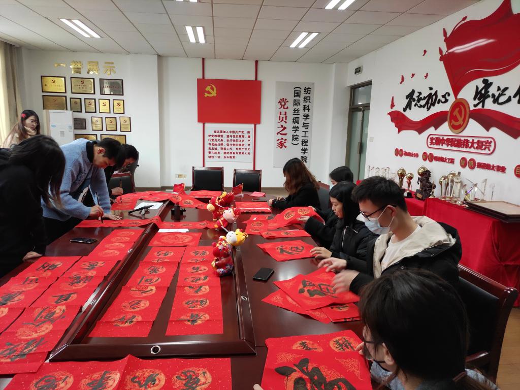 走进心里头,红色先锋有温度。虽然没有回家度假过年,但利用假期赶科研进度、用实验成果迎新春成为了该些学生的共同心声,也勾勒出同频温暖的心境,学生党员在此期间也纷纷成为冷清校园的“热心人”,他们组建“党员服务小分队”,设立“党员示范岗”,精心策划小型春节联欢会、“圆梦微心愿”、集中观影、“手写春联送祝福”及“一封家书”等活动,用仪式感去化解游子深深思乡之情,让留校学子在科研学习之余感受到校园温暖及同窗情谊。此外,他们投身学院心理育人质量提升工程,协同辅导员老师管理防疫物资,建立“一对一”联系,提供“点对点”服务,关注留校同学的身心状况,适时进行朋辈帮扶,共同营造“纺织家人”的暖心暖情。