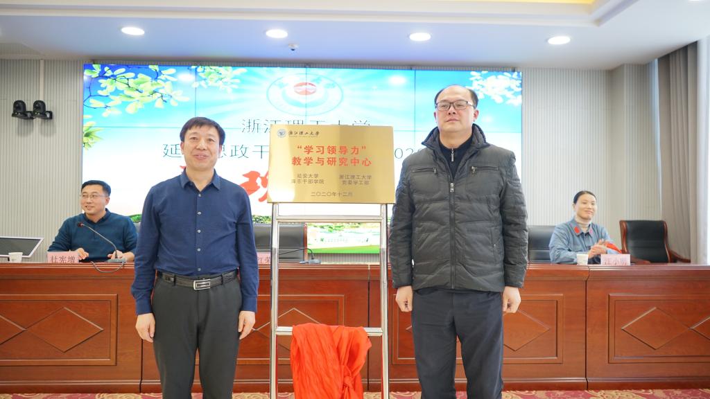 为加强党的领导力学习和研究,创新培养模式,形成工作联动,我校在原学生思政干部培训基地的基础上,整合学校辅导员职业能力提升工作室等平台,与延安大学泽东干部学院共建“学习领导力”教学与研究中心,杜红荣和胡琦为该中心揭牌。