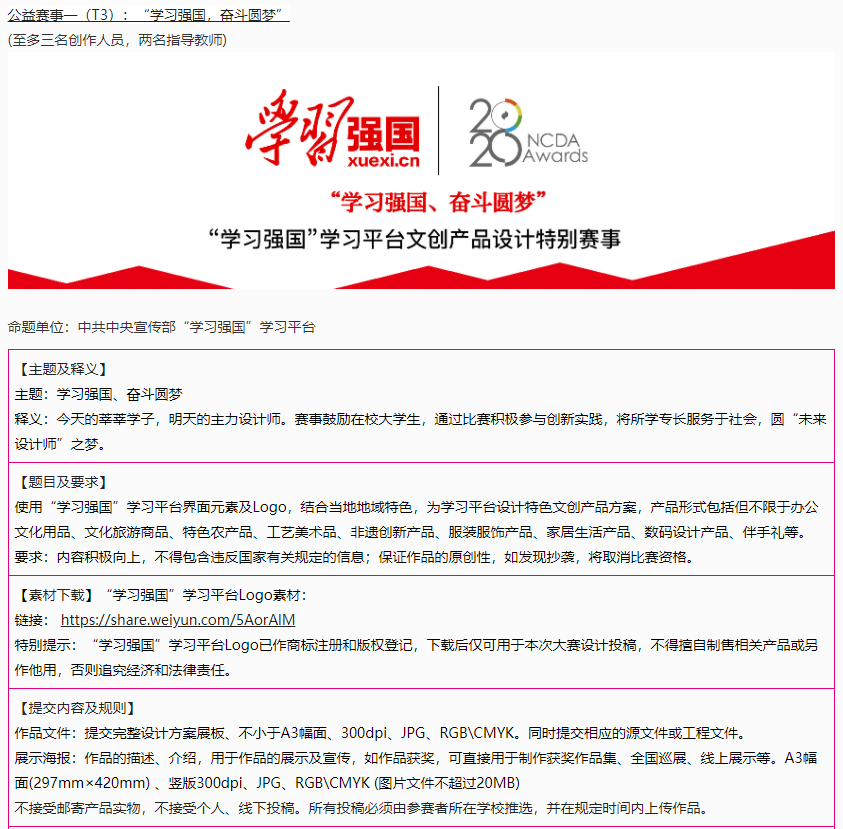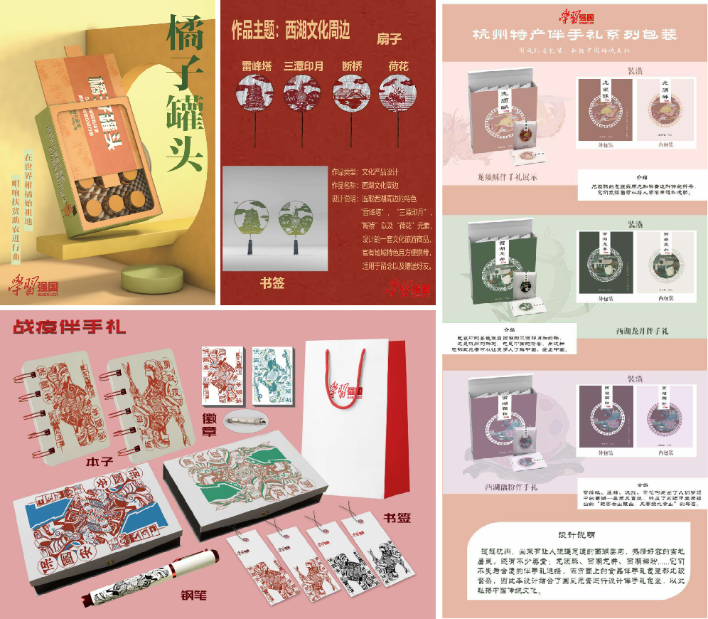 工业设计教工党支部书记张祖耀老师在指导学生创作期间,提出四点要求:1.结合学习的工具,文具类产品,体现学习精神;2.突出数字时代特点,学习强国本身是数字时代的学习平台;3.结合当地非遗创新,突出传统文化的转化和创新,结合旅游产品、居家产品;4.利用地方元素要讲好故事,不能只是简单表现,版面要点题。对党员创作起到了非常好的引导作用。