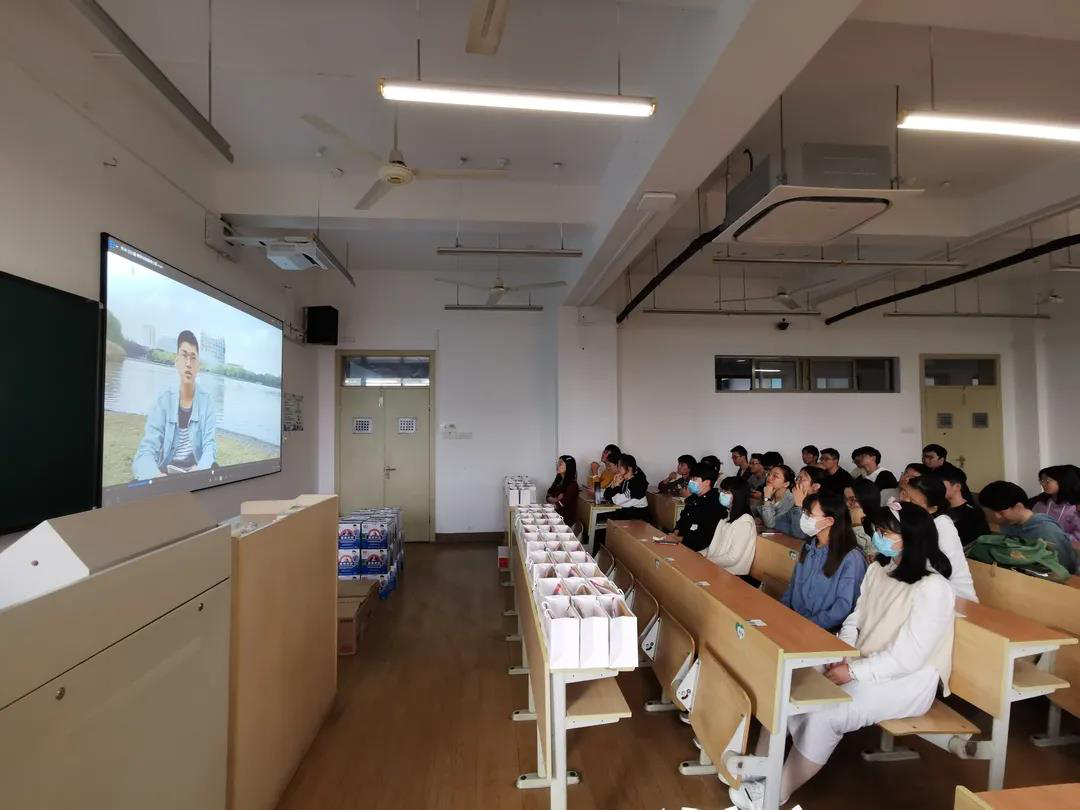 考研冲刺慰问会上,已成功考入东华大学材料学专业的刘永盛学长通过线上视频为在场的2017级考研同学分享最后40天冲刺阶段的考研经验,提供了许多高效有用的学习方法、心理调适方法供同学们参考。此外,为了缓解大家备考压力,大家一起观看了心理减压视频,希望大家保持积极、稳定的心态,舒缓备考心理压力。