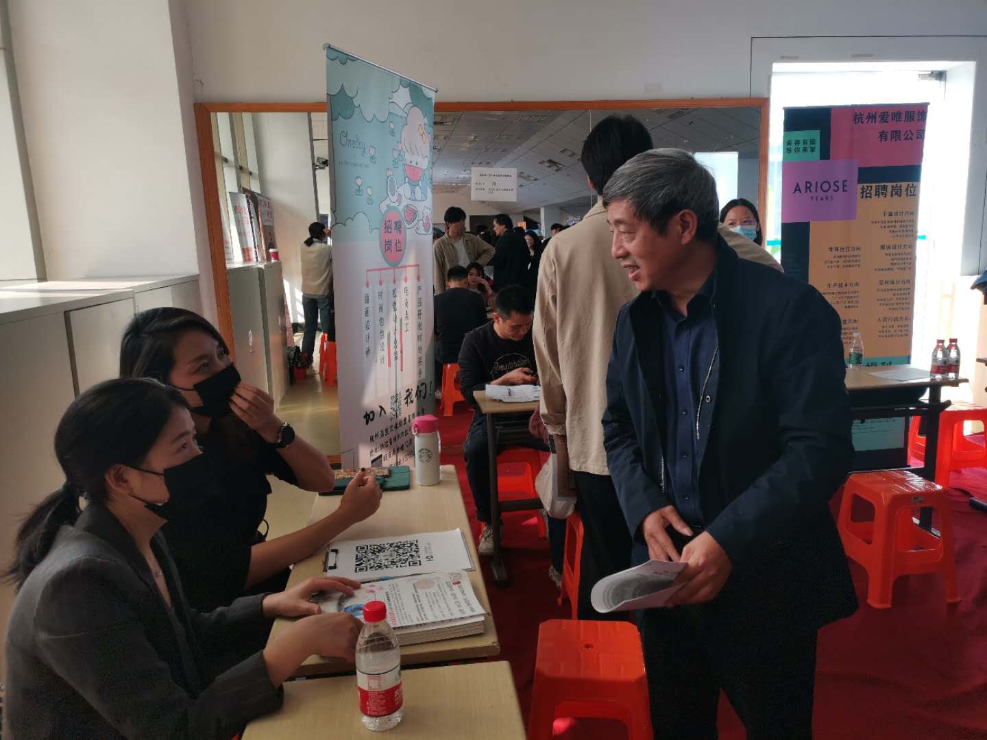 招聘会现场气氛热烈,吸引了来自我校服装学院、艺术与设计学院以及其他兄弟学院和院校的约2000余名毕业生前来咨询和应聘,现场投递简历并与用人单位进行面对面的交流。服装学院党委书记朱小行、院长邹奉元、党委副书记寿萌吉等领导亲临现场指导工作,并与参会的单位代表和现场工作人员亲切交流。