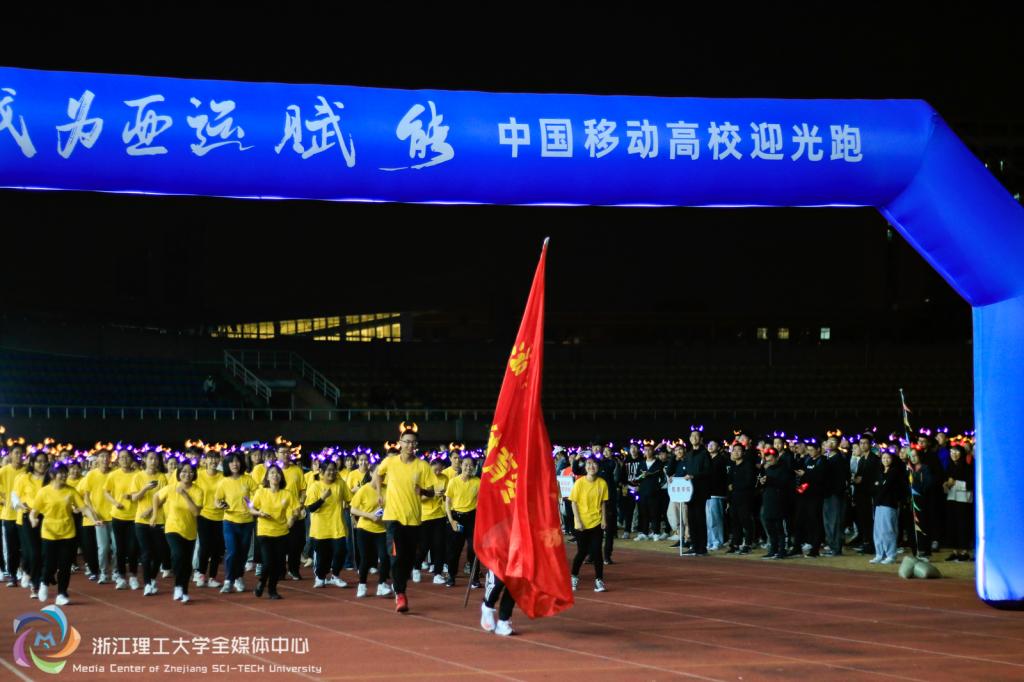天堂杭州遇见活力亚运,这不仅是竞技的舞台,更是全民的盛会。恰逢“2022年杭州亚运会”进入倒计时2周年。为迎接亚运会,传递体育正能量,杭州亚组委携手中国移动通信集团浙江有限公司组织全省26所高校举行“我为亚运赋能——中国移动全国高校亚运迎光跑”活动。作为分会场之一,10月23日傍晚,我校举行了以“为亚运赋能,为亚运接力”为主题的迎光健身跑活动。来自各学院的二千余名学子在万人体育场参加了本次活动。