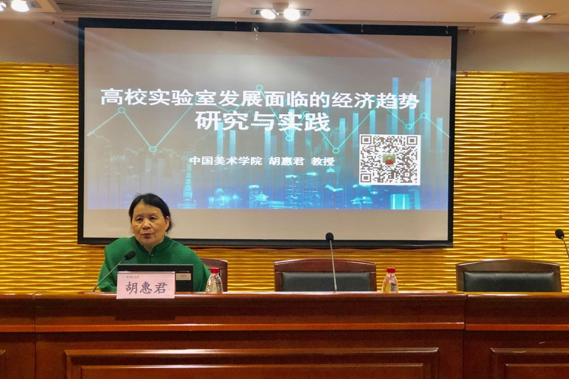 随后开展首场培训活动,中国美术学院胡惠君教授与现场教师就高水平实验室建设进行了深入交流。胡惠君教授通过对当前经济形势的宏观分析,强调了实验室建设要立足浙江乃至全国经济社会发展的必要性。随后,胡教授介绍了中国美术学院围绕学校办学定位和人才培养目标,从艺术类专业教学的特点出发,构建一流水平实验室的经验和做法,并结合未来社区项目,打造了校内与校外、实验教学与社会需求、现实与未来互联互通的实验实践教学体系。胡教授鼓励实验教师要围绕当前社会发展热点,积极探究,为培养适应未来发展需求的人才贡献力量。胡教授的报告思想超前,格局宏大,内容翔实,参训教师表示收获颇丰。活动由教师教学发展中心副主任王森主持,60余位教师参加。
