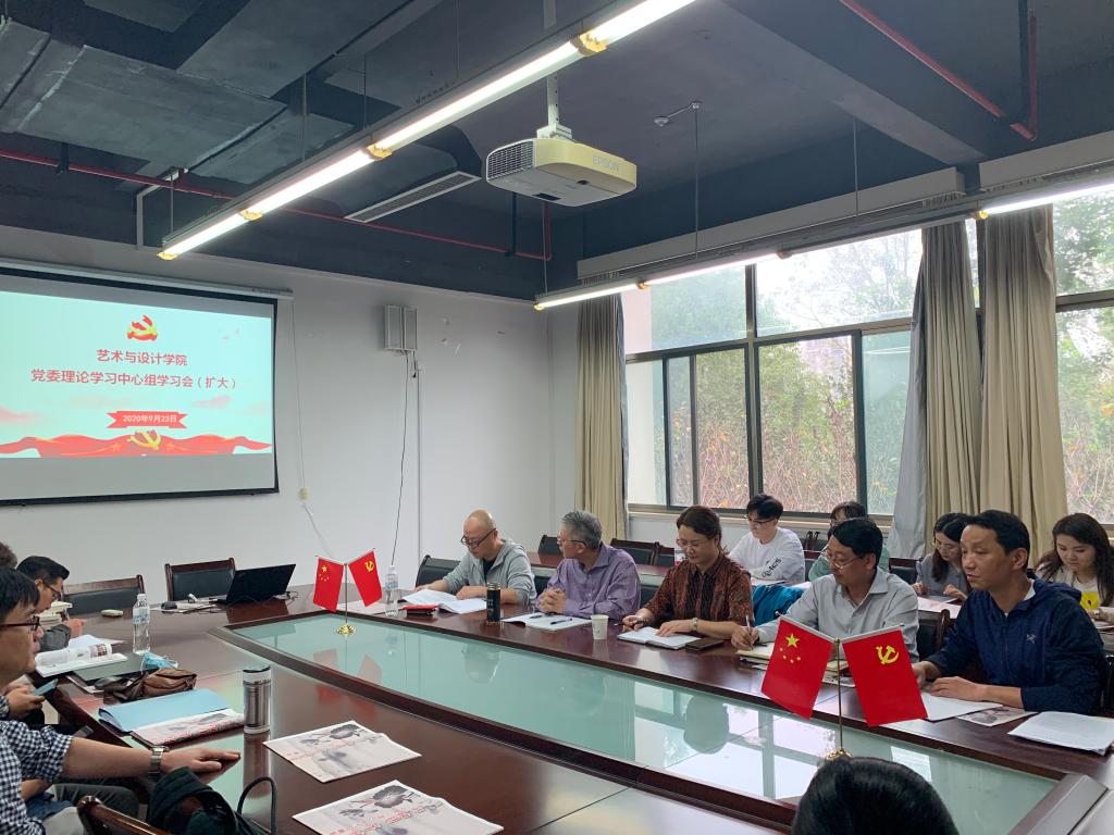 9月23日下午,艺术与设计学院召开党委理论学习中心组学习(扩大)会,学院党政领导、各教工党支部书记、研究生党支部书记、系(部、室)负责人、辅导员参加会议。校党委宣传部常务副部长、教师工作部部长高丽静教授应邀出席会议并就“三全育人”工作进行专题辅导。会议由学院党委副书记、纪委书记胡坚主持。