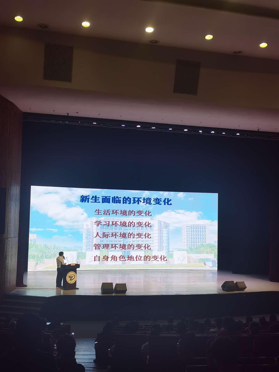 9月15日下午,tyc33455cc太阳集团成网官方入口心理健康教育中心主任沈荣根在学校大剧院为全体新生开展“‘心’起点,新征程——在浙理成长为更好的自己”主题新生心理健康教育讲座。讲座主要从大学生心理健康现状、如何对待大学生活、怎样寻求心理帮助等方面展开。沈荣根老师建议同学们要静下心找到自己的“锚”,确认自己真正喜欢的专业发展方向、兴趣发展方向,有明确的自我认同才是大学期间的“真正长大”。在现场互动环节,沈荣根老师强调悦纳自己,相互理解,包容互助的重要性。同时鼓励新生们遇到困难及时求助,并向同学们介绍了校心理健康教育中心、心理健康服务资源及预约途径等。讲座最后,沈老师对全体新生送上诚挚的祝福。