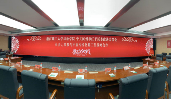2020年6月23日下午,法政学院与中共杭州市江干区委政法委员会举行合作协议签订仪式。中共杭州市江干区委政法委员会常务副书记金辉、法政学院院长王健教授,江干区信访局、区司法局、矛调中心相关负责人以及法政学院法律系、社会工作系负责人等代表共同出席了签约仪式。