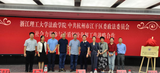 为深入贯彻习近平总书记在浙江考察时对浙江工作提出的“努力成为新时代全面展示中国特色社会主义制度优越性的重要窗口”、“把群众矛盾纠纷调处化解工作规范起来”的重要指示精神,法政学院与江干区政法委领导的江干区社会矛盾纠纷调处化解中心联合建立教研与实践基地。