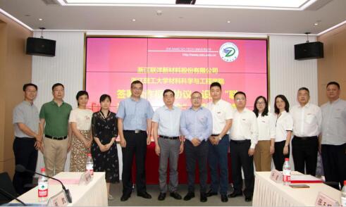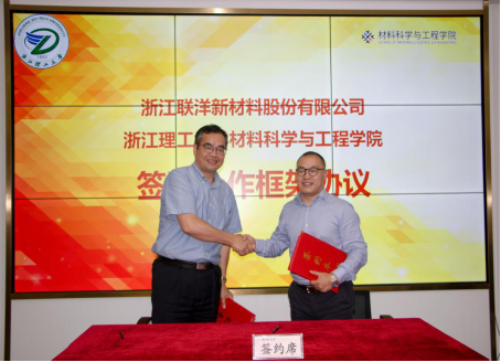5月28日下午,材料科学与工程学院与浙江联洋新材料股份有限公司签署合作框架协议、设立“联洋人才培养基金”暨兼职教授聘任仪式在材料学院415报告厅举行。浙江联洋新材料股份有限公司董事长蔡正杰,执行总经理陈国锋,副总经理王雪兴、魏莉丽、张玉明,产品总监胡菊明,管理中心副总经理平霞等企业代表参加仪式。我校副校长郜正荣,校党委委员、材料科学与工程学院院长姚菊明,校友工作办公室主任陈艳,人事处人才办公室主任张凯,材料科学与工程学院副院长杨叶锋以及学院师生代表等出席仪式。仪式由材料科学与工程学院党委委员周照东主持。