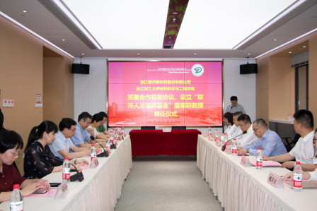 校党委委员、材料学院院长姚菊明教授代表学院致欢迎辞,对参加本次活动的嘉宾表示热烈欢迎,对双方一直以来的合作进行了回顾和展望,他表示,感谢浙江联洋新材料股份有限公司支持学院的事业发展和人才培养工作。随后,姚菊明教授代表学院与浙江联洋新材料股份有限公司董事长蔡正杰签署合作框架协议。材料科学与工程学院副院长杨叶锋代表学院与浙江联洋新材料股份有限公司执行总经理陈国锋先生签署“联洋人才培养基金”捐赠协议。仪式上,校友工作办公室主任陈艳为浙江联洋新材料股份有限公司颁发捐赠证书。人事处人才办公室主任张凯介绍浙江联洋新材料股份有限公司董事长蔡正杰个人简历,让大家感受到了蔡正杰先生独特的人格魅力和作为企业家带领团队朝着标杆走、一往无前的初心。