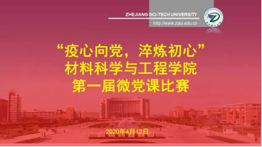 4月12日下午,材料科学与工程学院在腾讯会议线上举办了第一届“‘疫’心向党,淬炼初心”微党课比赛。学院党委委员周照东老师,学院团委书记、学工办主任魏莉莉老师,学院党委组织员魏厚钱老师以及来自材料学院各个支部的100余名党员、预备党员和入党积极分子在这个特殊的时期集聚线上共同参加并收看材料学院第一届微党课。