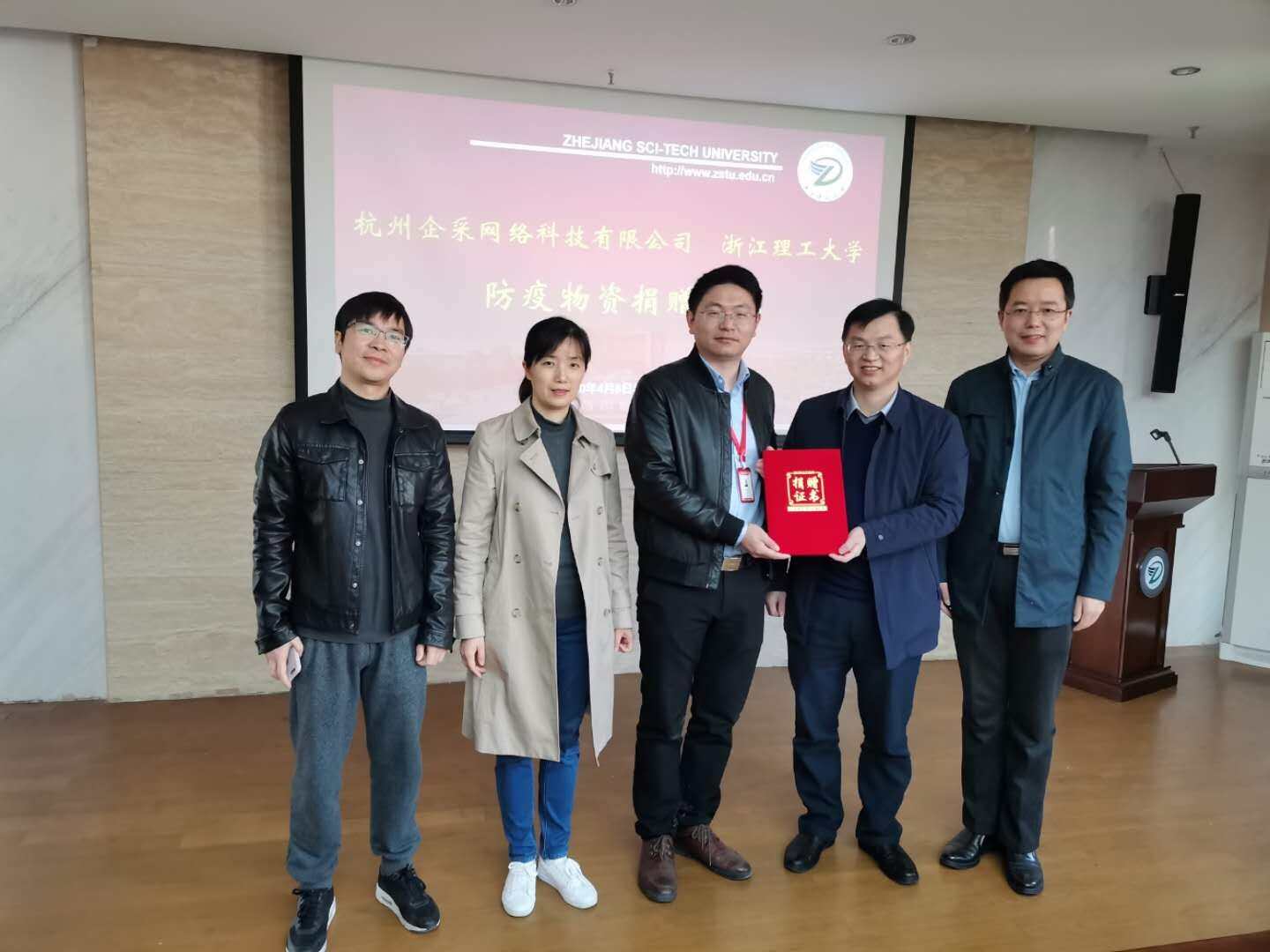 4月8日下午,我校2010级法政学院校友、杭州企采网络科技有限公司董事阮国江校友向学校捐赠洗手液、消毒液、消毒器等防护物资助力我校卫生防疫工作。副校长、疫情防控工作领导小组副组长王剑俊代表学校接受了捐赠,校友工作办公室、公共事务管理处负责人参加了捐赠仪式。