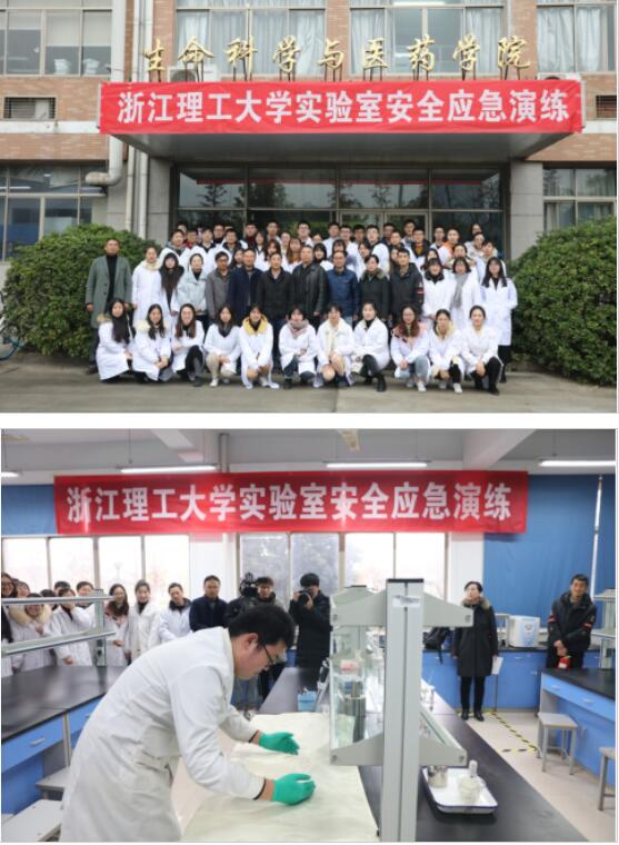 本次实验室安全应急演练内容包括“消防器材使用培训”、“酒精灯操作失火应急处置演练”与 “化学品泄漏应急处置演练”三部分,由生命科学与医药学院、实验室与设备管理处、保卫处、党委宣传部主办,上海联盈环保科技有限公司协办。实验室与设备管理处汪进前处长担任总指挥,生命科学与医药学院于威副院长任现场指挥,近七十名师生、相关职能部门领导参加活动。