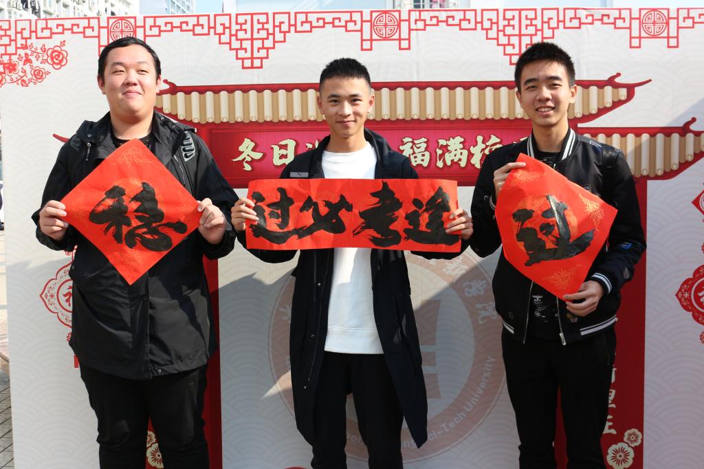 本次迎新服务活动在桂花园食堂门口举办,服务点的工作人员为全校师生准备了福字、新年春联和剪纸窗花。同学与老师一齐参与到书写春联与福字的活动中,伴着冬日的暖阳,书写的字似乎也带着阳光的温暖,一笔一画,一个个福字,一幅幅精美的对联无不蕴含了书写者对师生们的祝福与期盼;此外剪纸活动也倍受师生们的关注,一裁一剪,一个个图案,一片片精美的窗花均包含着剪纸者的诚挚与温暖之情。精美的刀工,精致的春联,精彩的生活特写,让人目不暇接。活动还邀请了书法协会老师共同参与,书法协会老师在一张张提前裁好的红纸上尽情地挥毫泼墨,将最真诚的祝福送给参与师生。在活动场地的新春寄语留言墙上,老师和同学们也纷纷表达了自己的新春祝福,并拍照合影留念。