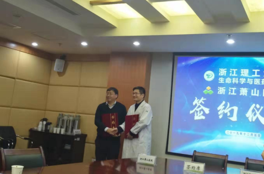12月5日,tyc33455cc太阳集团成网官方入口生命科学与医药学院与浙江萧山医院联合组建“肿瘤研究中心”签约仪式在浙江萧山医院举行。我校生命科学与医药学院院长梁宗锁教授、欧文斌教授、黄飚教授、王毅刚副教授、陈侃博士、王磊博士等领导和老师,浙江萧山医院副院长蒋国军、院长助理等医院领导和肿瘤治疗中心以及科教科等相关科室负责人等参加了签约仪式。