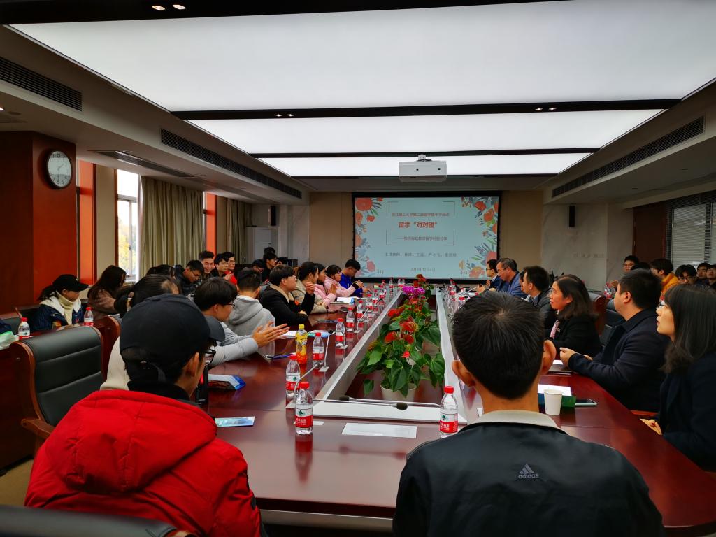 12月4日下午,我校第二届留学嘉年华活动之留学“对对碰”----校侨留联教师留学经验分享会在行政楼215举行。教育厅统战处主任胡凌秋,党委组织部、统战部副部长吴跃峰,校侨留联常务副主席丁先锋教授等出席会议,来自理学院、纺织科学与工程学院(国际丝绸学院)、生命科学与医药学院、艺术与设计学院和启新学院、创业学院等共计110余名学生参加了经验分享会。会议由校侨留联主席李加林教授主持。